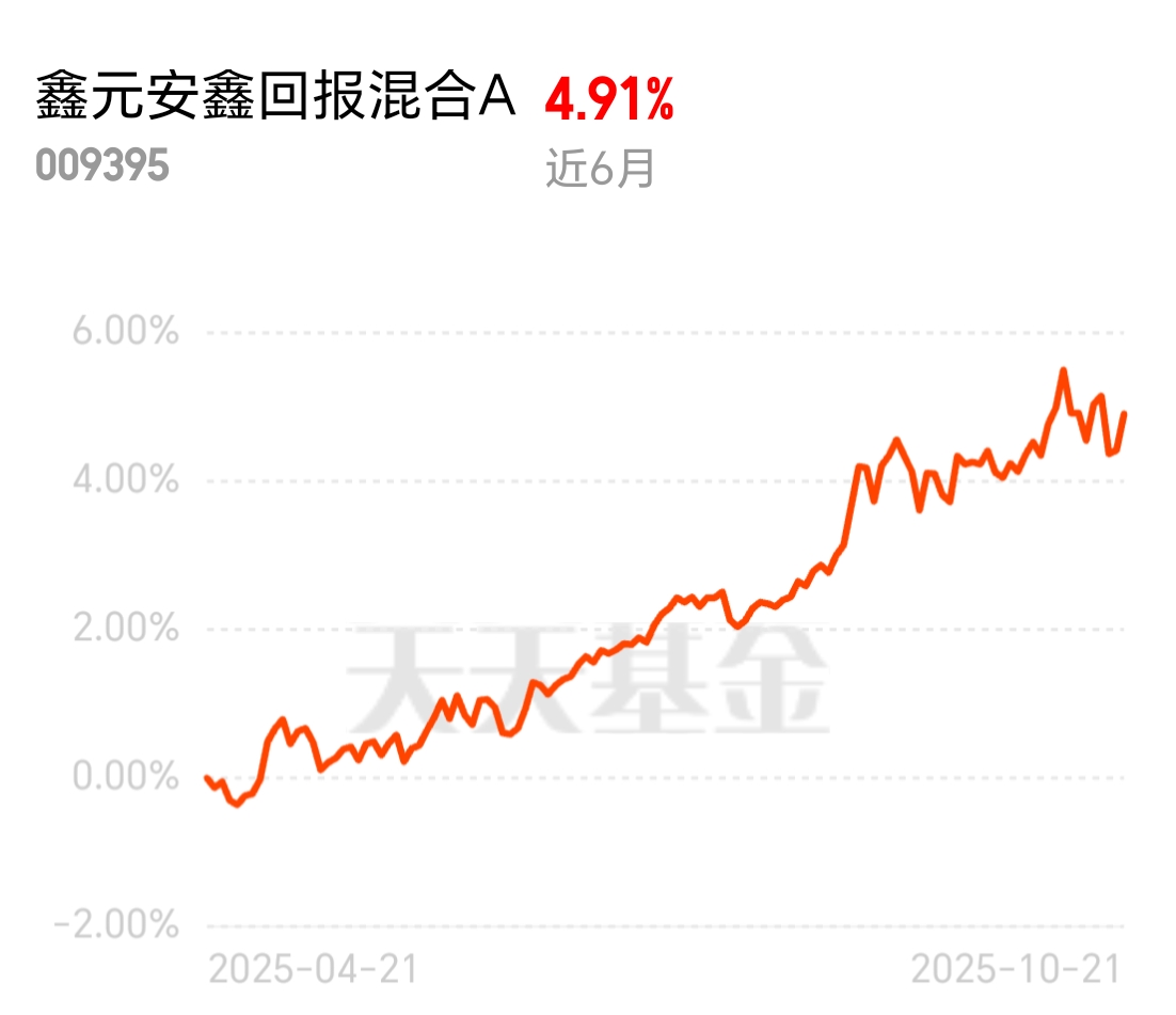 这段时间股债都有点波动,好多人不敢下手。其实跌下来的才是机会,鑫元安鑫回报混合A近6个月有4.91%的收益,抗跌性不错,现在加仓能摊低成本。