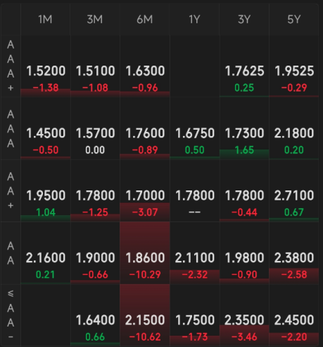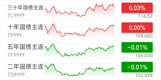债市今天延续震荡偏暖的格局,十年期国债活跃券收益率变化不大。国债期货涨跌不一,长端表现较好,利率债局部飘红,信用债则是暖意延续。整体来看,债市今天维持窄幅震荡。期限利差延续收窄。