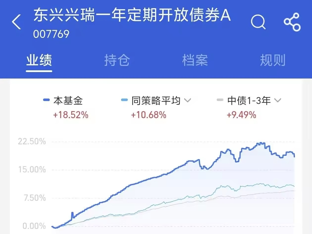 主要看上他的一个长期收益,我看各位小伙伴们都想着调整吃面,不过经过这波之后说不定会有个机会,我这波的话等着这波行情过后看能不能来个回暖的肉肉了哈,最近行情也是有点回暖的迹象,希望接下来也是能后来点肉肉吧$东兴兴瑞一年定期开放债券A$