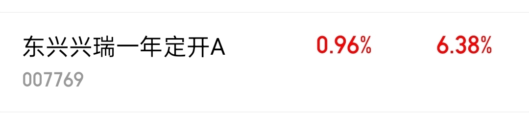 对于投资者而言,无需时刻关注市场涨跌,靠时间赚收益呀,$东兴兴瑞一年定开A$ 近一年涨0.96,近2年涨6.38%。