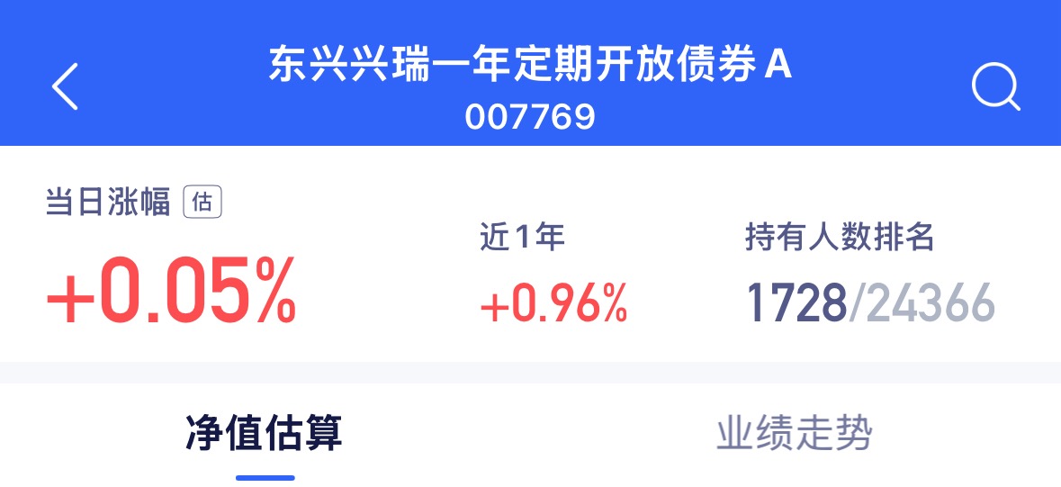 今日利率债、信用债延续晴天格局,国债收益率小幅下行,现券走势向好,政策发力优化信用预期。$东兴兴瑞一年定开A$ 今天预计收蛋 5 个,持仓结构优质,聚焦高等级标的,兼顾长债配置与短期交易机会,近三年收益近20%远超基准,定开模式规避频繁申赎干扰,攻防兼备适配稳健配置需求。