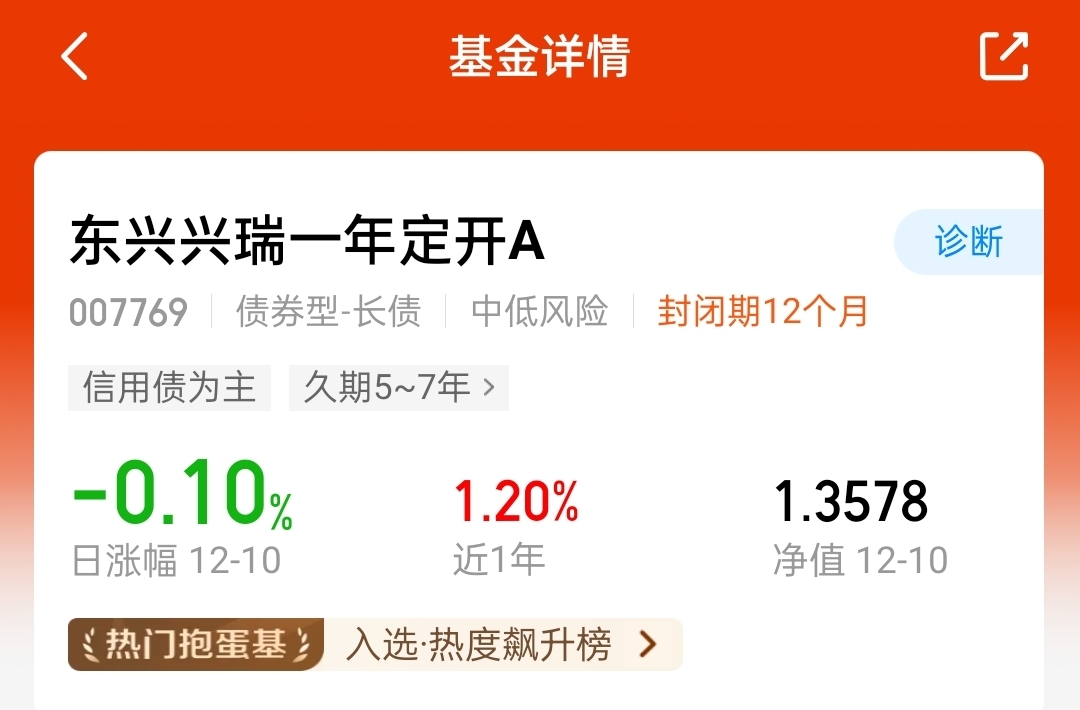 本周债市行情起来了!12月11日一开盘,国债期货就全线上涨,30年期主力合约,10年期、5年期、2年期的也都跟着涨。和美联储降息有关,加上最近央行一直在通过逆回购操作给市场放水,再加上年底机构有配置需求,债市就涨了。东兴兴瑞一年定开A,近一年涨1.2%。