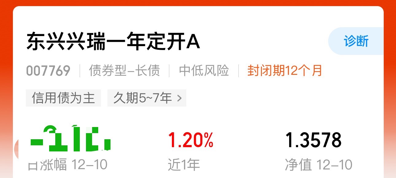 当三大指数全线下探,不少投资者直呼“hold不住”,债市却送来慰藉。利率债持续回暖势头正劲,盈利空间持续打开,信用债亦步亦趋稳步走高$东兴兴瑞一年定开A$ 近一年上涨1.2%,业绩稳定,继续努力