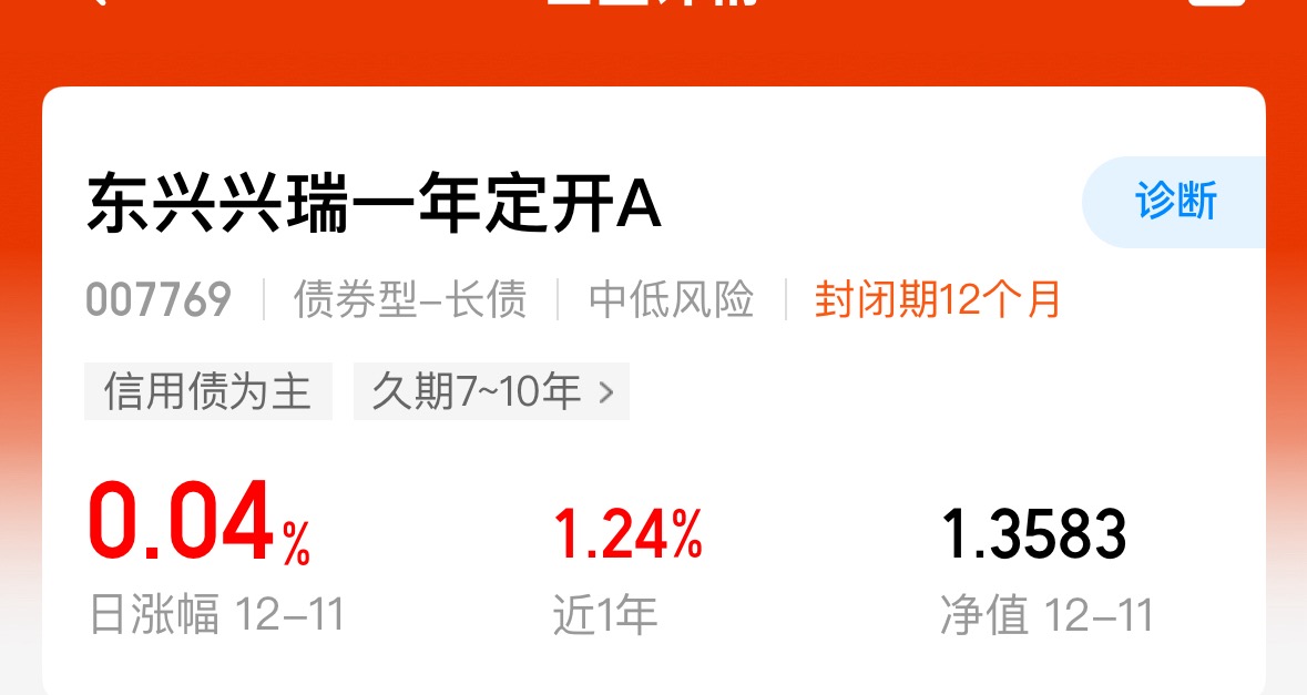 今日债市利率债走弱承压,信用债震荡运行。$东兴兴瑞一年定开A$ 昨天收蛋 4 个,凭借定开属性规避流动性冲击,持仓聚焦信用债且久期偏短,大幅降低利率波动影响,基金经理对市场敏感度高,波段操作能力突出,历史业绩领先同类,最大回撤不足同类一半,继续看好!
