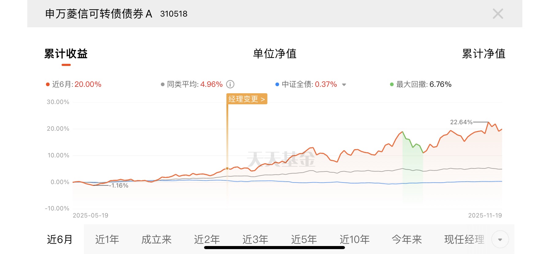 如今理财市场产品五花八门,选对的才赚钱,可转债基金就是当下的热门。申万菱信可转债债券A近6个月收益20.00%,兼顾稳健与弹性,不用频繁操作,长期持有就能有不错回报。
