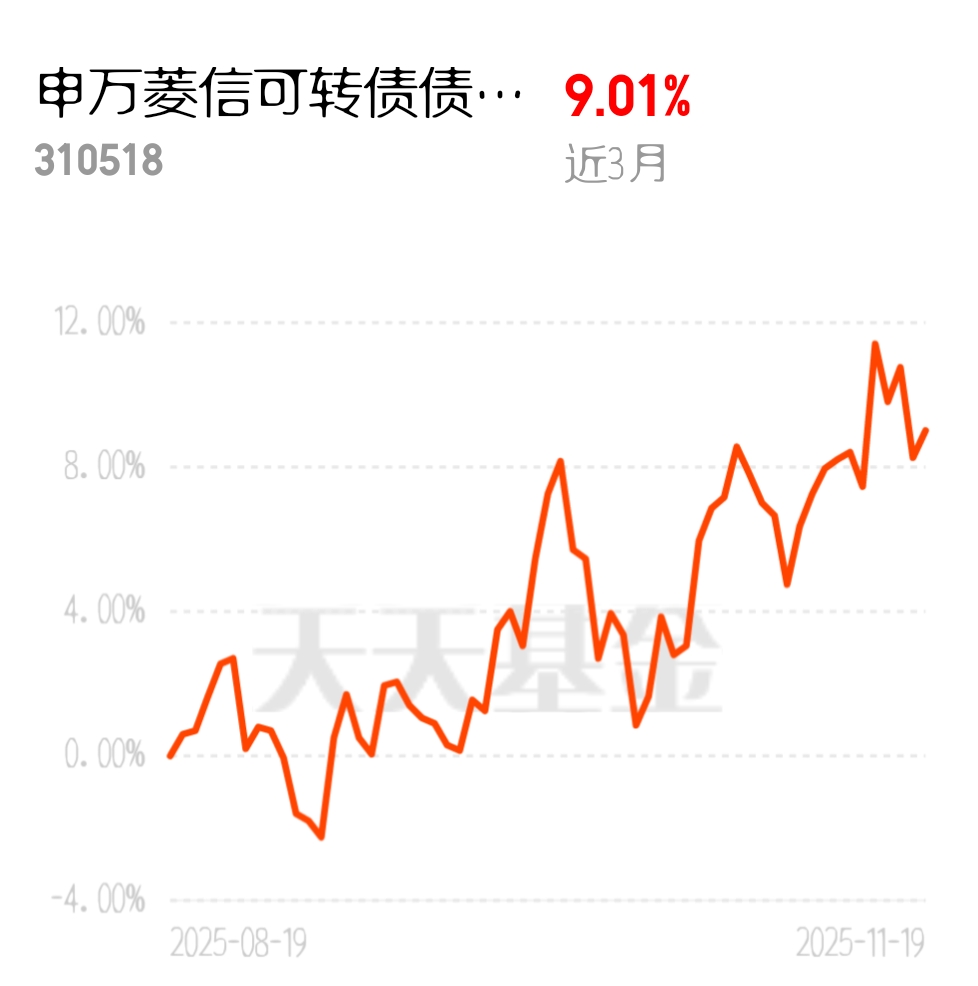 最近可转债市场虽然有调整,但优质基金依然能保持正收益,韧性十足。申万菱信可转债债券A近3个月收益9.01%,凭借扎实的债底支撑和灵活的股性操作,在调整中依然赚钱。