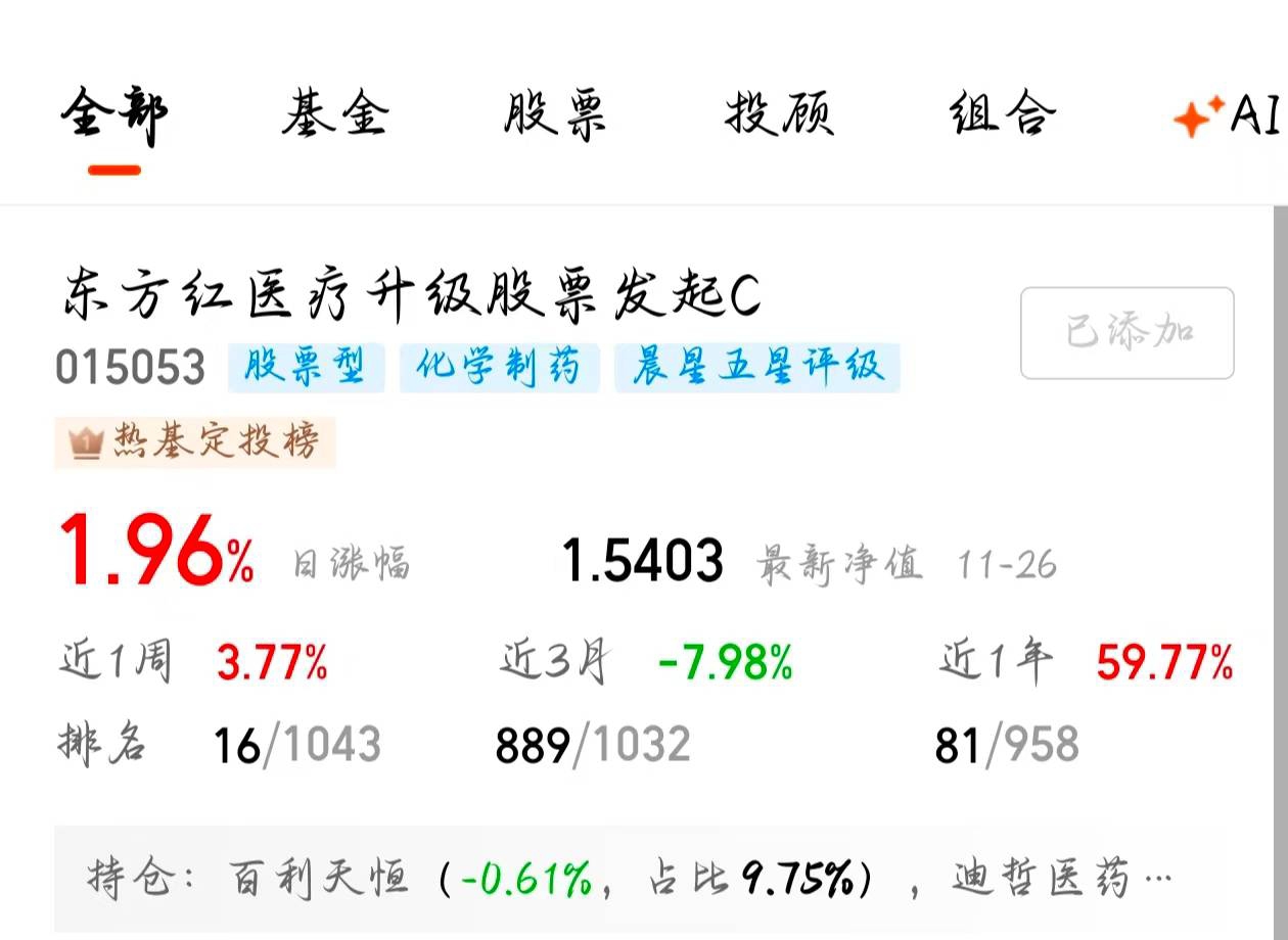 港股创新药估值修复开始了,东方红医疗升级昨天涨1.96%率先响应。一年涨幅59.