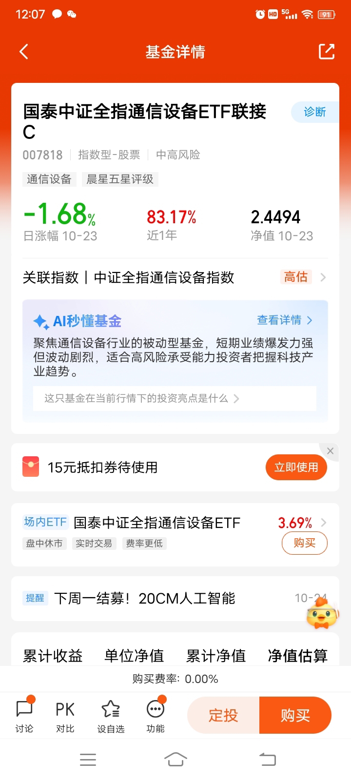 #科技热点摊开业啦#老师您好! 我比较关心$国泰中证全指通信设备ETF联接C$ ,说实话心里有点矛盾——看它近1年涨了83.17%,确实吃到了通信设备和科技行情的红利,但今天又跌了1.68%,波动来得又快又猛。