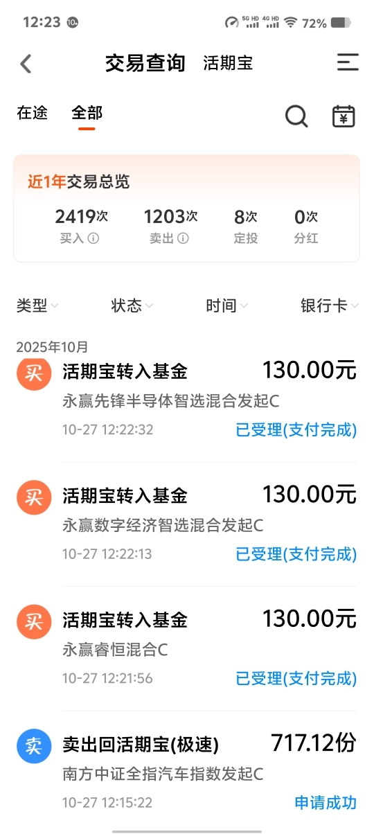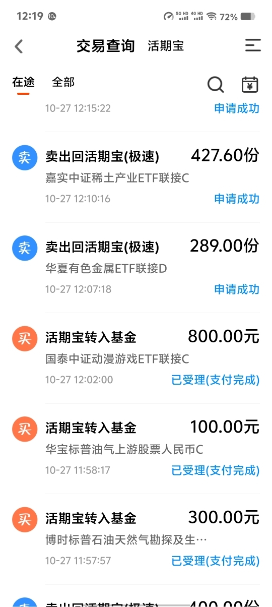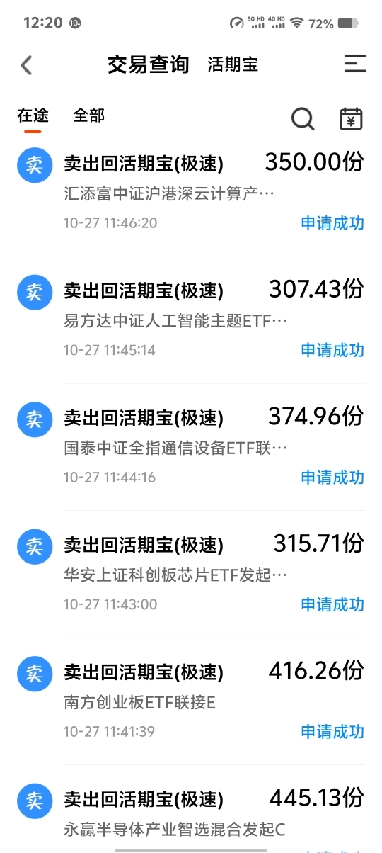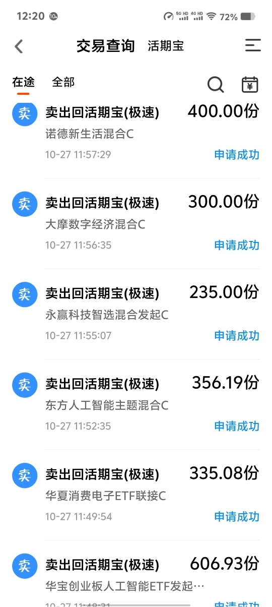 (先点赞,后观看,年入100万)今天市场上除了游戏、现货黄金在调整,其他基本上是普涨。上周五晚上美股油气下跌,今天的操作:美股油气少量加仓,游戏少量加仓,其他这几天上涨较多的有色、稀土、消费电子、人工智能、云计算、通信设备、科创芯片、创业板指等,减掉1/8左右的仓位,其他那些涨幅不大的持基不动待涨。汽车指数我清仓,另建仓永赢三只鸡(见图+130元)。大家应该根据自己的持仓成本、大小、资金量的使用情况,以及自己的压力承受能力的大小,作出合理的加减仓决定,我的操作仅供参考。不作为投资依据。(收盘前如果盘面有大的变化,应相应的进行调节):