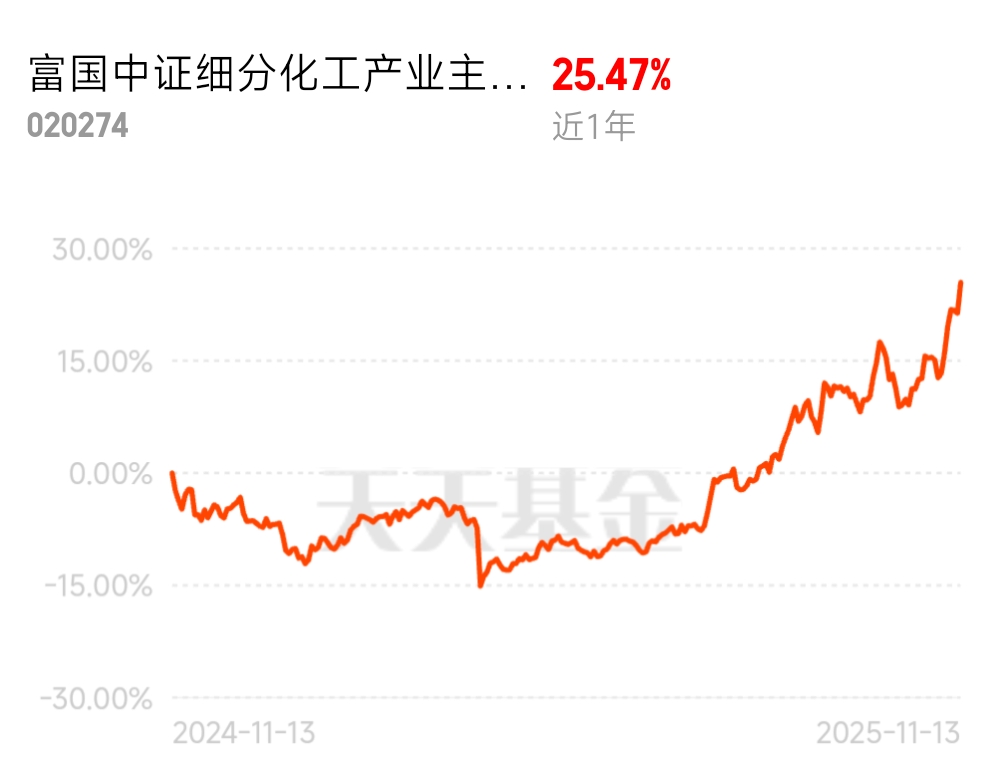 当前也持有通信设备和化工主题的基金,发现富国中证细分化工产业主题ETF联接C近一年收益排同类第一。化工行业磨底已久,产能出清叠加“反内卷”推进,PPI若回升,库存周期回暖可能带来新机会。