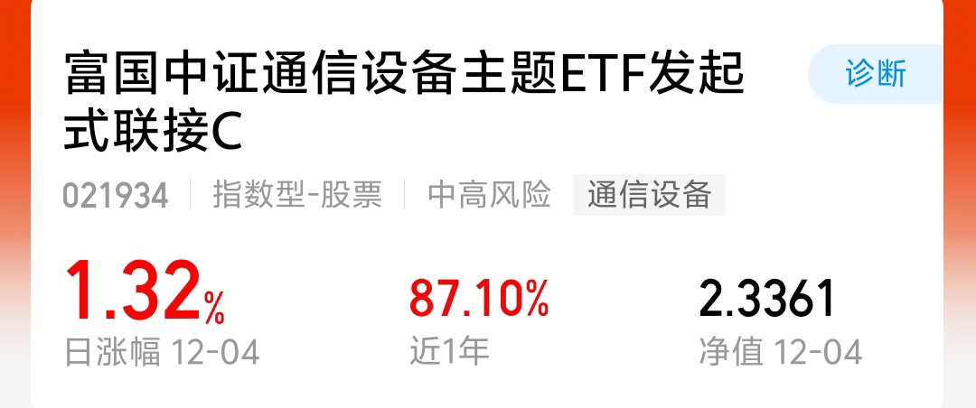 昨天通信行业上涨。富国中证通信涨1.32%。