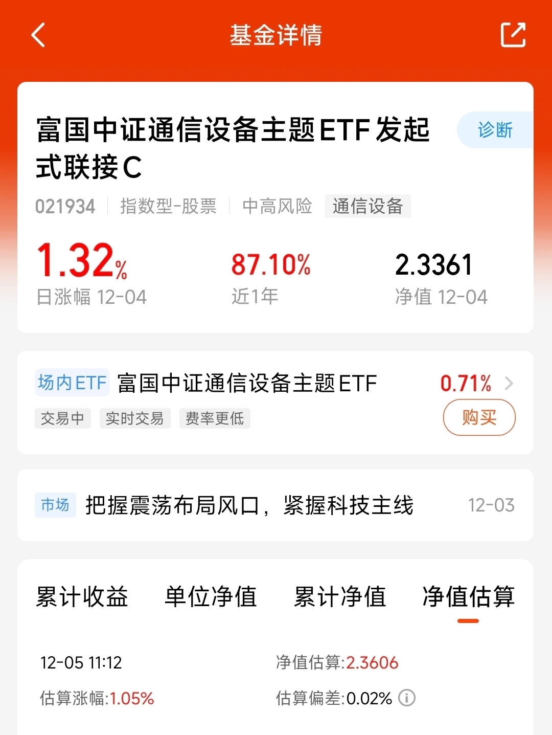 看着通信设备迎来了好转,整体还在向上走,看着富国这只表现也优秀,昨天涨了1.32%,一起配置多挣点零花钱不好吗