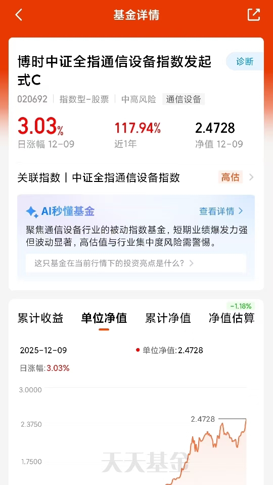 $博时中证全指通信设备指数发起式C$ 不管是短期还是长期,都能跑赢业绩基准,近一周、近三月的涨幅都很亮眼,表现太能打了