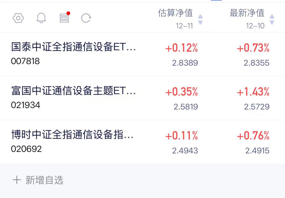 富国的通信设备昨天涨1.43%,$国泰中证全指通信设备ETF联接C$ 昨天涨0.73%,$博时中证全指通信设备指数发起式C$ 昨天涨0.76%中长期业绩走势看着可以,今天再加点$富国中证通信设备主题ETF发起式联接C$ ,后续走势值得期待