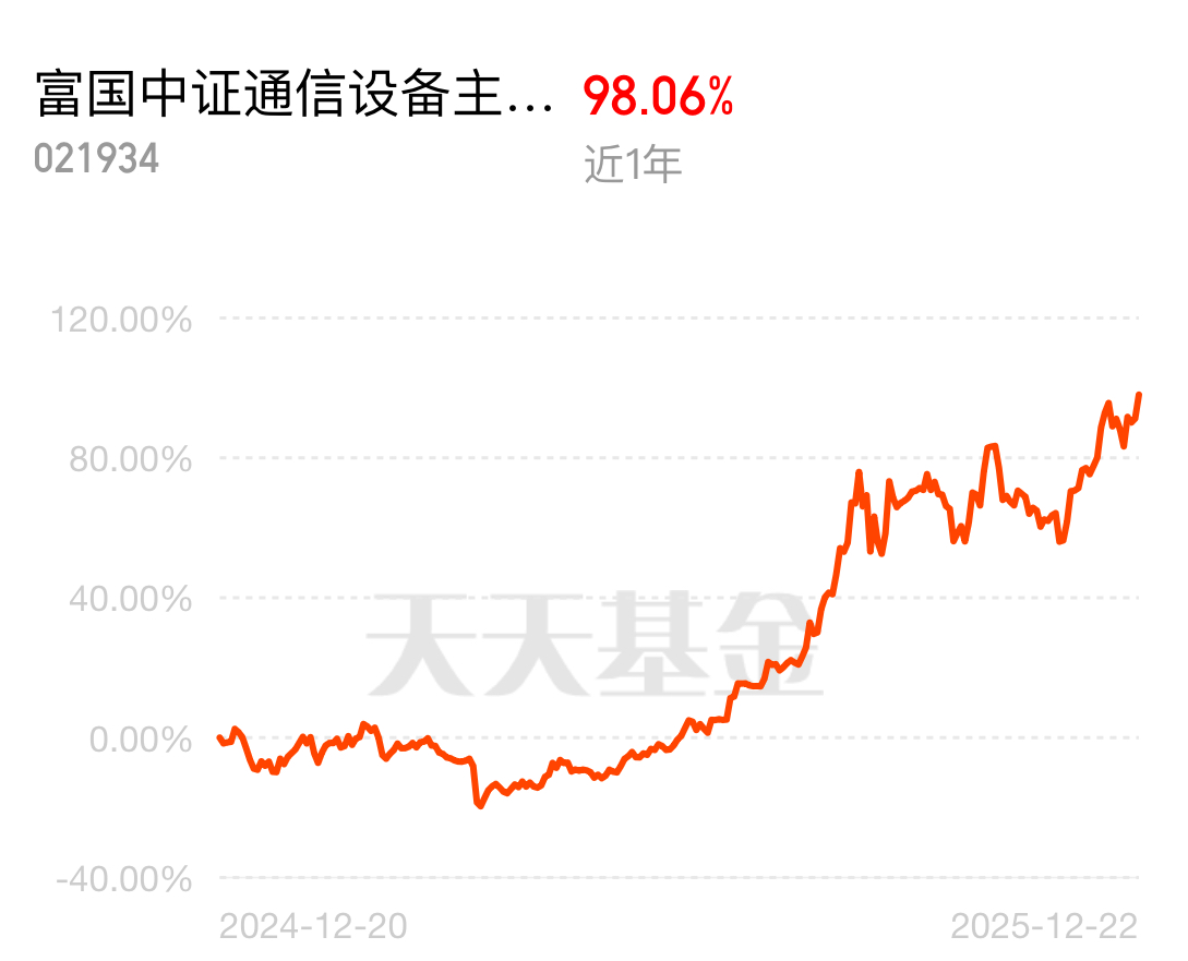 同样是通信设备主题,富国中证通信设备主题ETF联接C近1年收益98%,还跑赢了绝