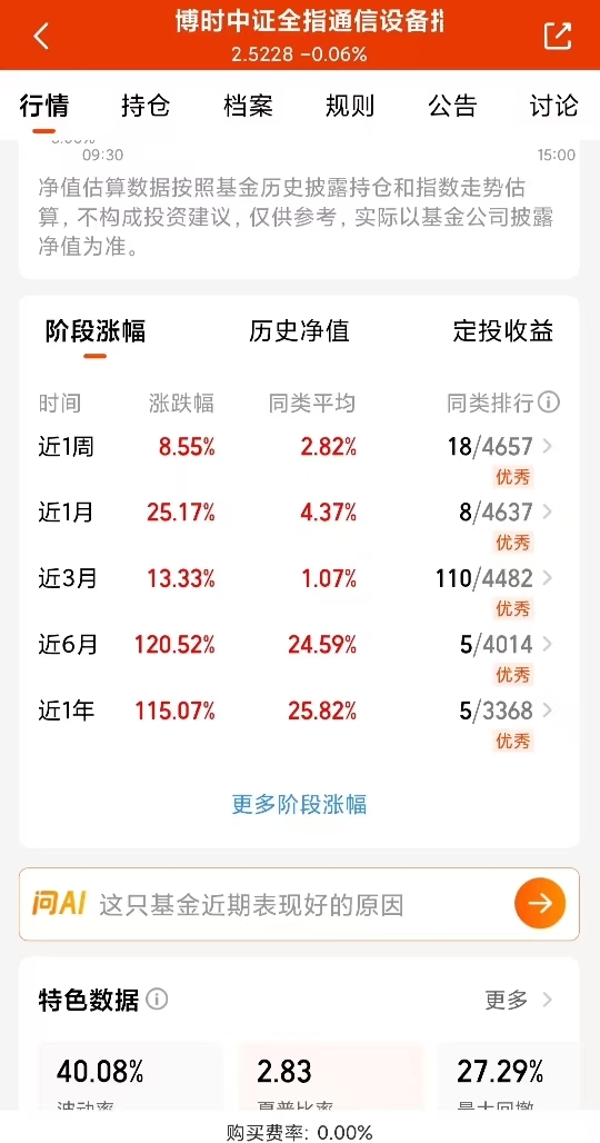 同样是做通信设备指数,$博时中证全指通信设备指数发起式联接C$的跟踪能力真的完胜,能牢牢贴合中证全指通信设备指数走势,误差小,想要纯吃通信赛道红利,选这种精准跟踪的才是正选
