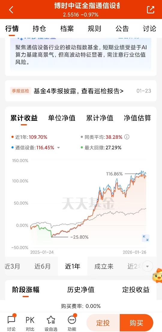 $博时中证全指通信设备指数发起式C$ 就盯着通信核心赛道,热点方向全覆盖到了,跟踪误差还更低,持仓又刚好贴合AI算力和6G技术迭代的主线,既能精准吃透行业红利,又靠均衡布局控住波动,长期拿着体验感特别好