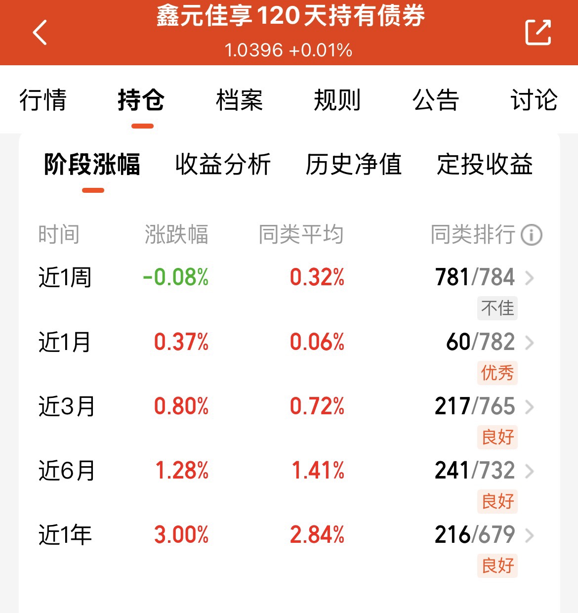 $鑫元佳享120天持有债券C$ 最近有点稳!净值慢慢往上走,低波动不折腾,闲钱放这儿太省心~