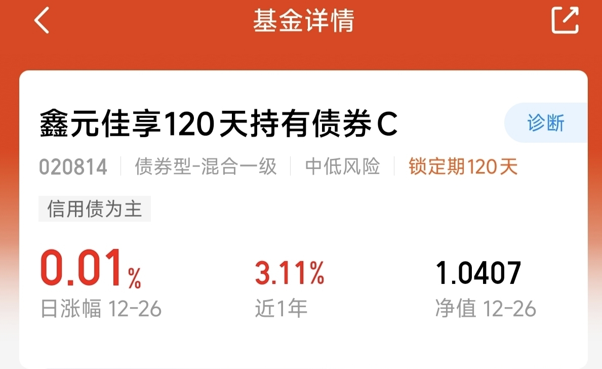 中低风险好选择,$鑫元佳享120天持有债券C$ ,持满百日稳收益
