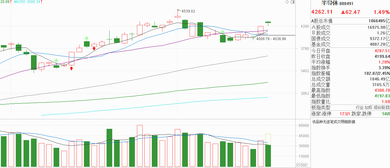半导体的朋友们,都给我瞪大眼睛看清楚!上周五高开高走中阳反弹把20天线和10天线都修复了,周末有消息面的利好,半导体今天高开力度比较大,但高开后并没有继续上行,而是出现高开低走,只能说明抛压比较大,从中线看依然在8月28号高点为箱底,10月9号上影线为箱顶的大箱体内震荡,上周五半导体的资金流入,估计是买预期卖现实的短线行为,今天借着利好出现直接就兑现了,走势当然不及预期,但这样也没有脱离大箱体内的震荡特征,我认为也没有必要过度看淡。今天半导体高开低走基本确认了没有持续做多的中线资金,我认为继续围绕20天线震荡是大概率。20天线一方面作为半导体本次上涨的上升趋势线,一方面又是8月以后大箱体的中位区,对短期的半导体没有多大指引,我认为可以按箱体震荡的规律来把握半导体的市场节奏:能回到箱底就继续看好,能回到箱顶就要开始谨慎,这个时候追涨是不合适的,现在急不得!