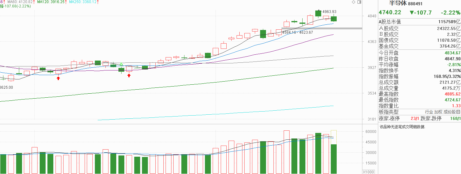 半导体:高开低走失守5天线!是转弱还是蓄力?闷骚的走势太要命