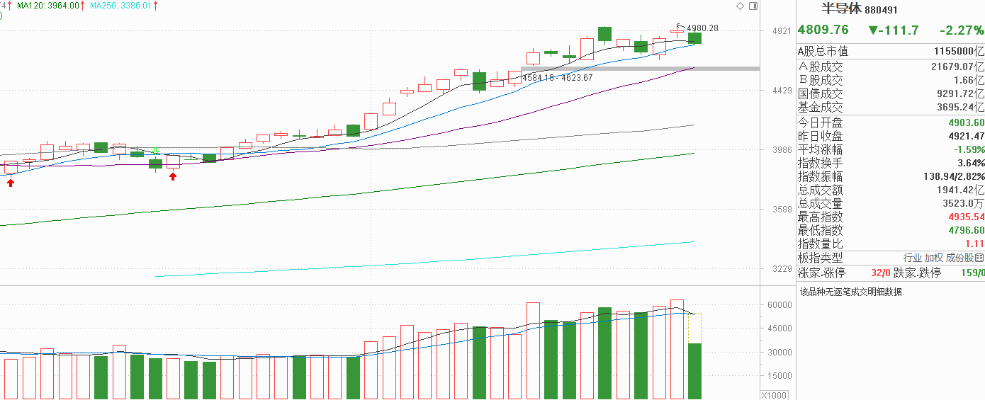 半导体:高开震荡小阴线是拐点还是压盘?5天线上方内藏惊天机遇
