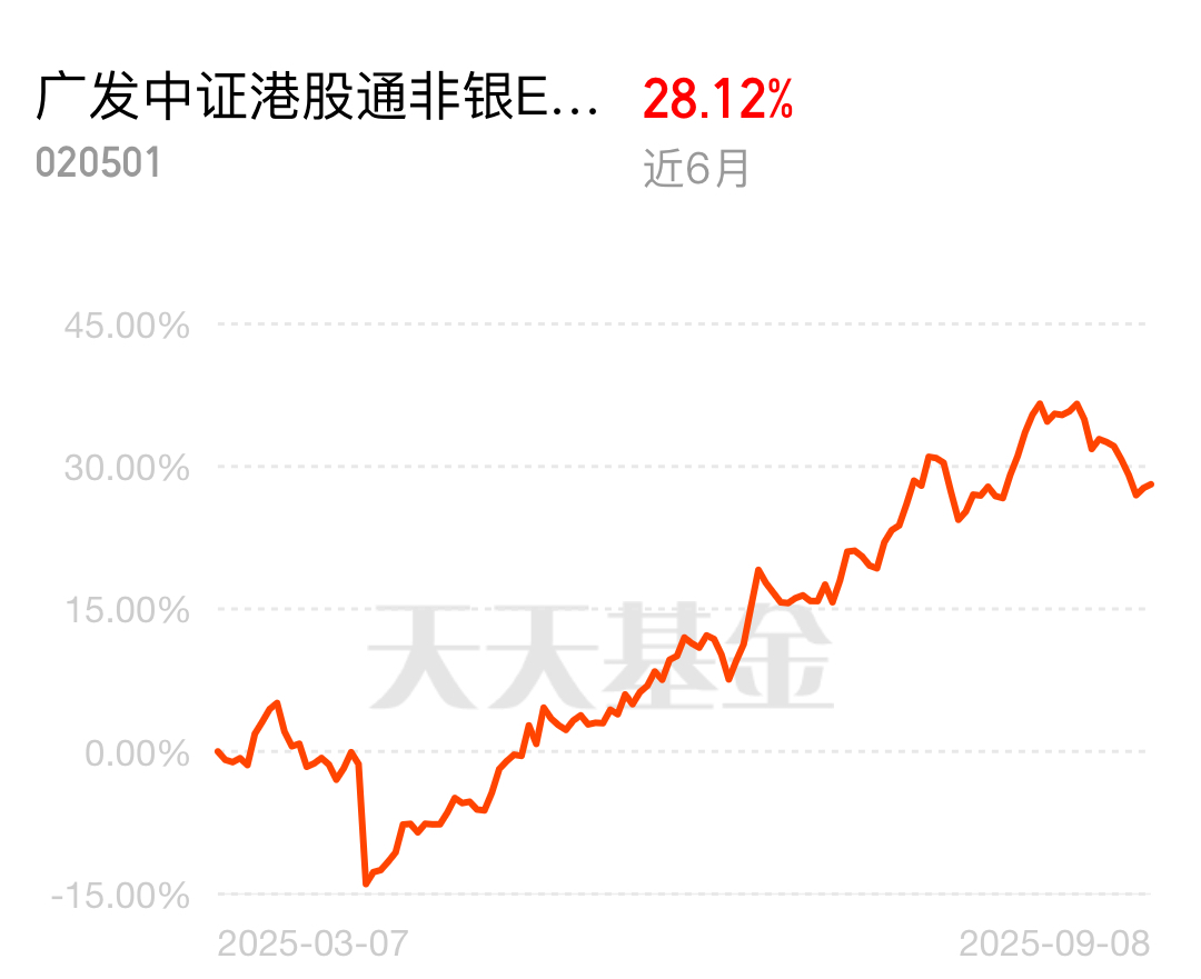 牛市旗手今天终于动了,$广发中证港股通非银ETF发起式联接C$今天涨了快1个点,