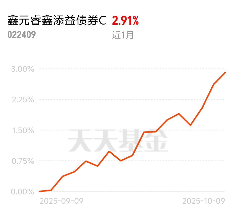 10年期国债收益率在下行,债券价格涨了,债基自然跟着好。鑫元睿鑫添益债券C近一个