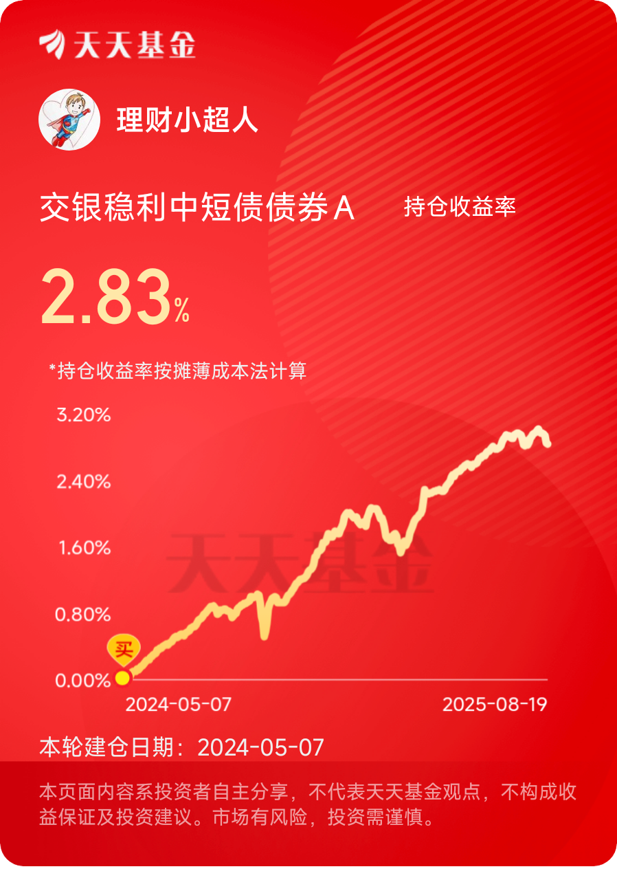 短期调整我们可以配置长期业绩稳健,收到能力也不错的$交银稳利中短债债券A$ 耐心持有,收益慢慢涨起来,加油#7月投资总结:我的收益如何了?# #晒收益#