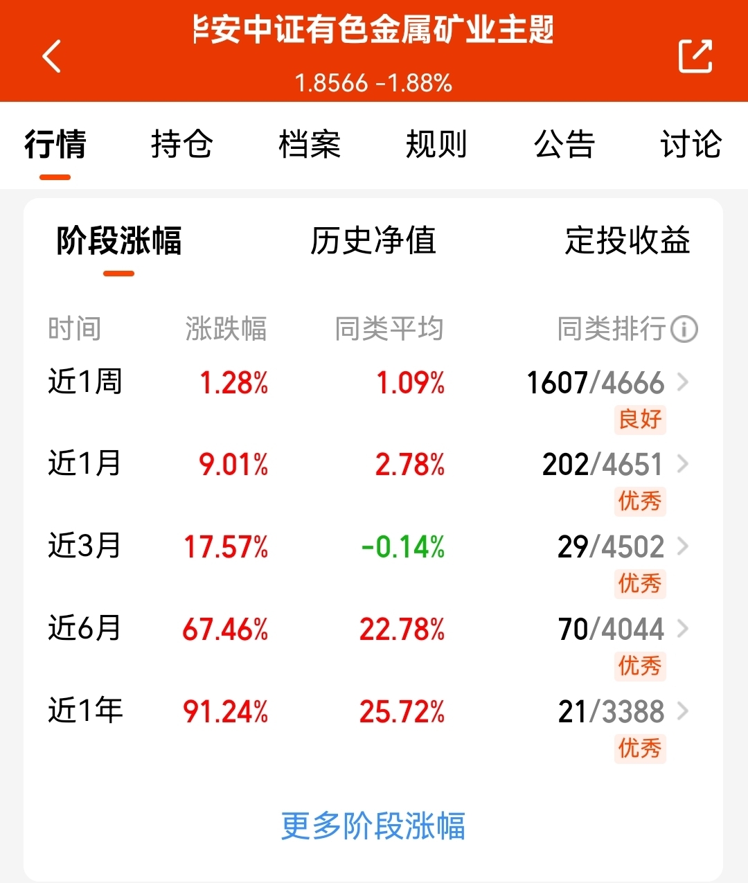 布局有色就选划算的!这只成分股全是有色,$华安中证有色金属矿业主题指数发起式A$ 近六月涨超67%,入选超省指数,申购费0折,低成本赚高收益太香