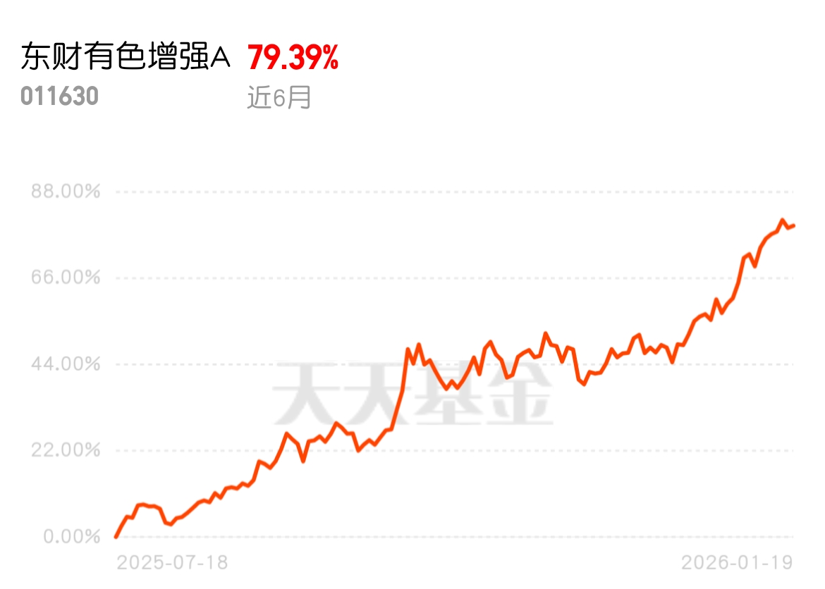 带011630走势图 1 月 20 日部分有色标的跌得厉害,含铜的更是惨不忍睹,这只缺是跌的,反观东财有色昨天涨幅第一!东财有色增强 A 近 6 月 79.39%,紫金 + 螺母含量 27%,有增强就是不一样,涨多跌少,长期持有超安心。$东财有色增强A$