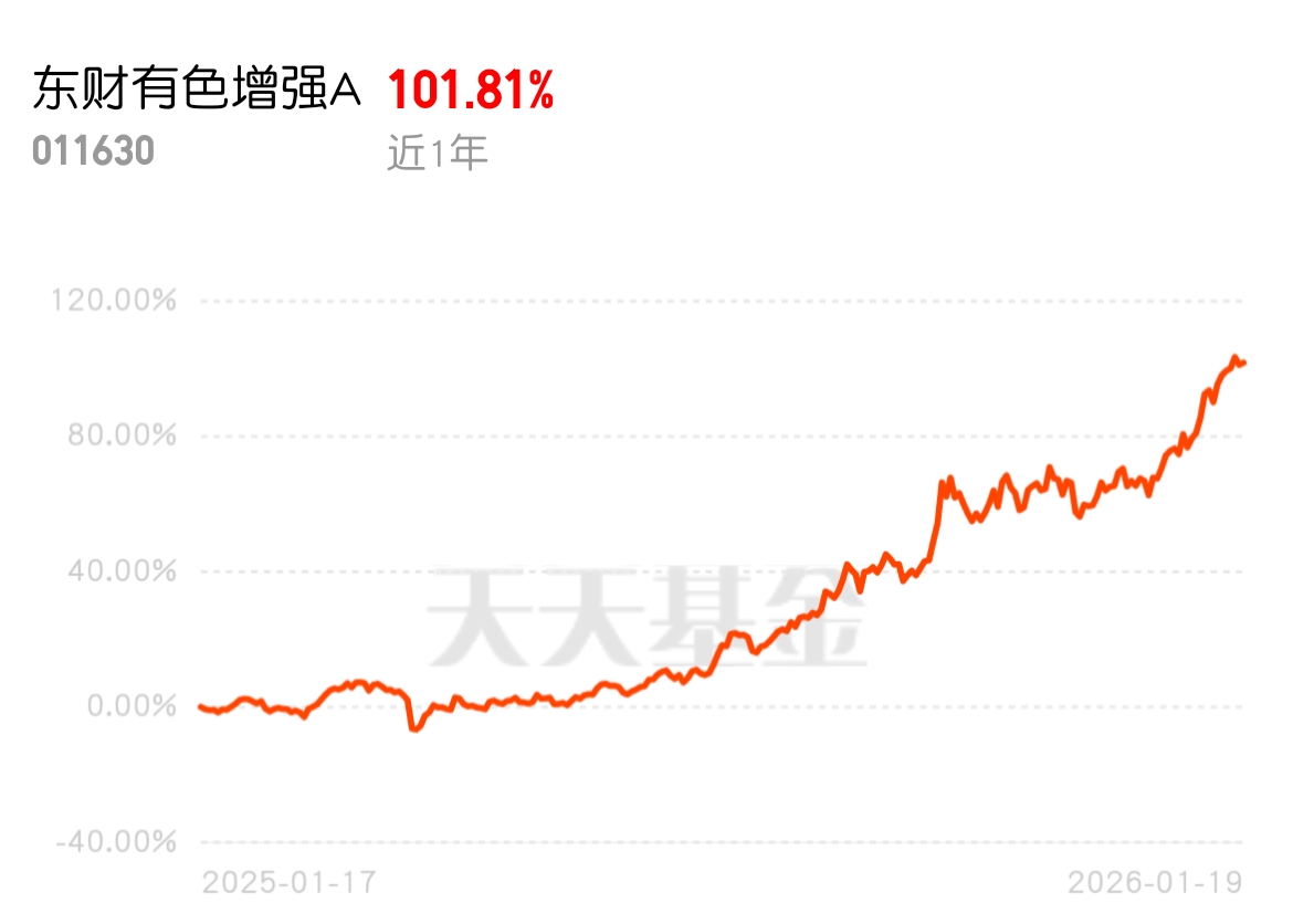 有色板块今天走弱,你买的工业有色居然又跌了,别人涨你跌快赔我点!东财有色增强 A 近 1 年 101.81%,昨天都是涨的还拿了涨幅第一,持仓含紫金,唯一的有色增强,比你手里的工业有色强太多。$东财有色增强A$