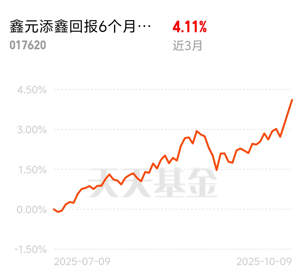 宏观环境利于固收+发挥,回撤小、体验好。鑫元添鑫回报6个月持有期混合C近3个月4.11%,看好就加仓跟上。$鑫元添鑫回报6个月持有期混合C$