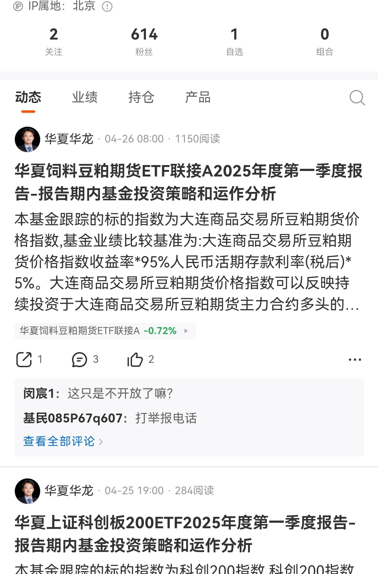 $华夏饲料豆粕期货ETF联接A(OTCFUND|007937)$ 华龙求了吗?半年多没说话了。基金表现这么差