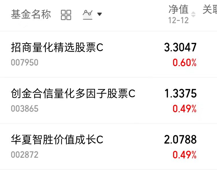 $招商量化精选股票C(OTCFUND|007950)$上周五上涨0.6%$创金合信量化多因子股票C(OTCFUND|003865)$上周五上涨0.49%