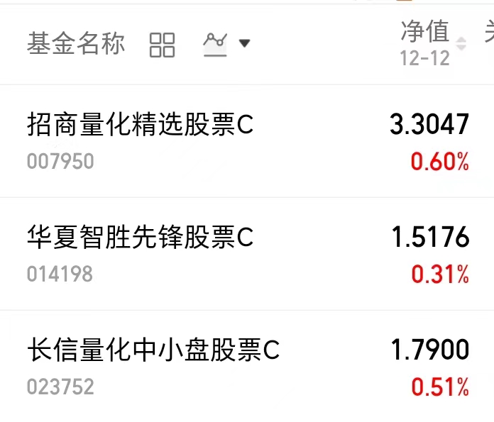 $招商量化精选股票C(OTCFUND|007950)$上周五上涨0.6%$华夏智胜先锋股票C(OTCFUND|014198)$上周五上涨0.31%