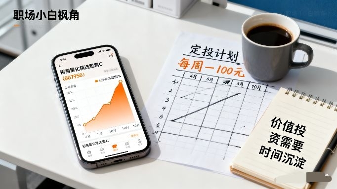 作为刚毕业半年的职场小白,理财路上最幸运的事,莫过于4月偶然发现了「招商量化精选股票C(007950)」——从4月到10月,它一路高歌猛进涨超50%,净值曲线像开挂般陡峭上扬,瞬间戳中了想靠小积累赚复利的我!12月果断开启每周一定投100元,如今虽略有浮亏(近1月跌0.93%),但我丝毫不动摇,因为真正的价值投资,从来都需要时间的沉淀与耐心的坚守~ 今天就从真实定投体验出发,深度测评这只量化黑马,聊聊它为什么值得新员工长期托付!