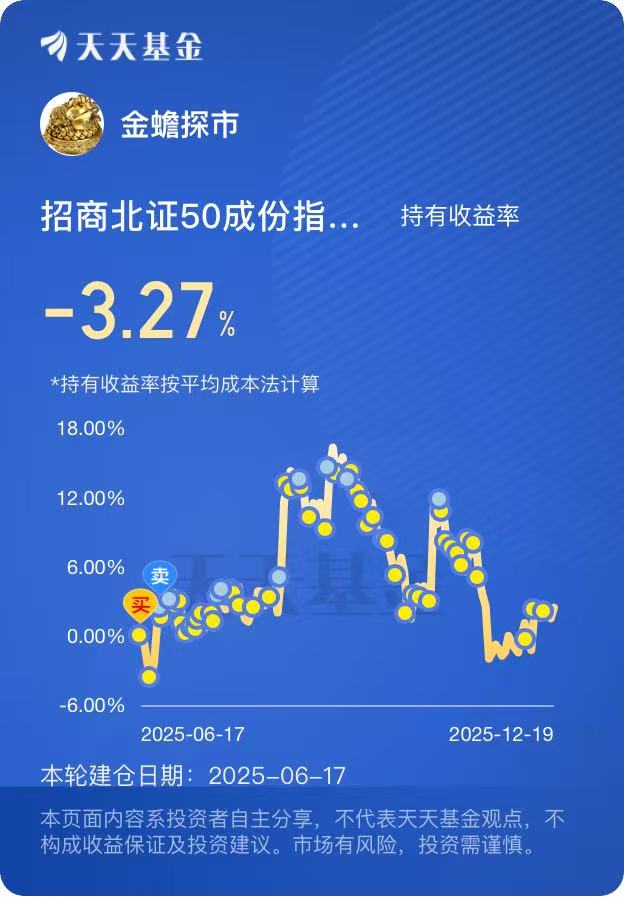 如今持有这只基金已有半年,我不再像以前那样频繁盯盘。看着它在市场波动中稳步跟随指数前行,我越发明白,量化精选的核心魅力在于“用规则对抗焦虑”。而招商北证50C,就像一座桥梁,让我能轻松参与北交所的成长红利,也让我与量化精选的故事,有了更具体、更长久的延续。@招商基金