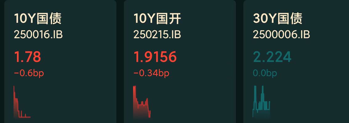十年期国债收益率:1.78%,-0.6BP(国债收益率越跌,债市越涨)
