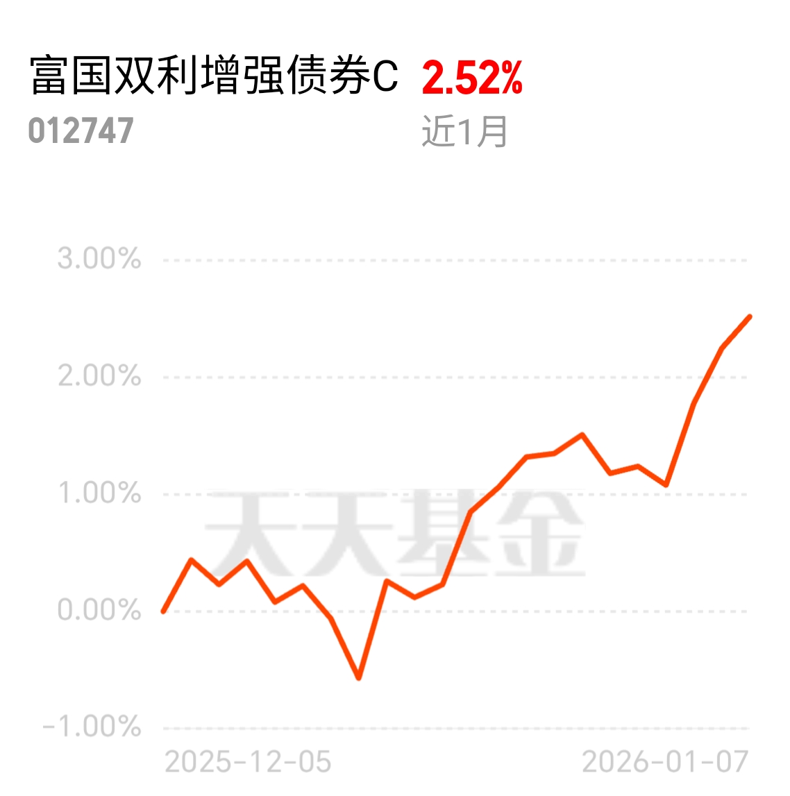 富国双利增强C最近表现突出:连涨3日、创新高,近1周收益1.3%,近1月3%,同