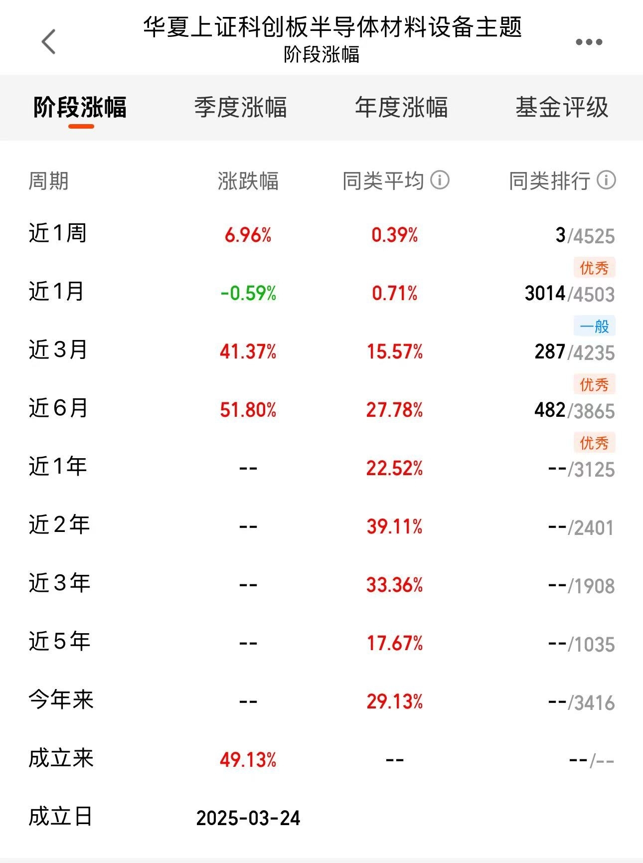 今天科技全面反弹了,看好$华夏上证科创板半导体材料设备主题ETF发起式联接C$的高弹性,刚成立不到三个月就涨了近24%,场内半年就有近52%,是全市场首只聚焦半导体设备材料赛道的ETF产品,加油冲哈,今天的反弹要保持住啊