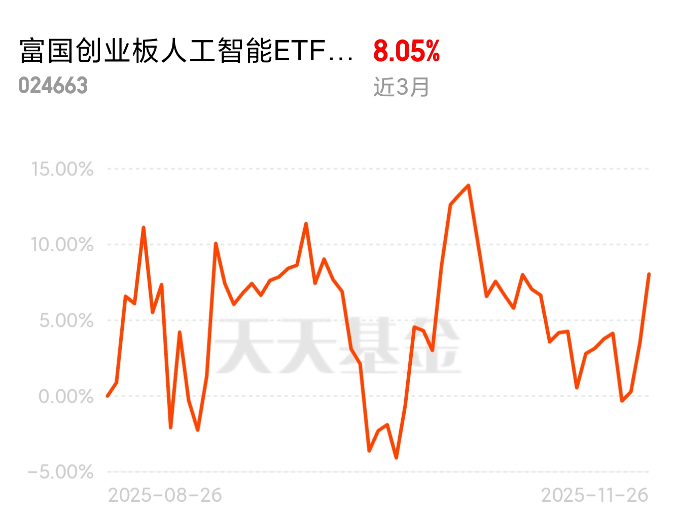 人工智能板块连续大涨趋势明显!AI产业持续景气催化算力需求高增,先下手为强继续布局$富国创业板人工智能ETF发起式联接C$ ,近三月涨超8个点。