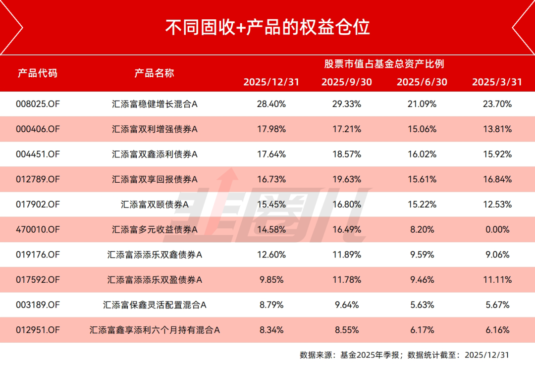 而汇添富,建立了一套从低波到中波再到高波的产品矩阵。在不含新发基金的情况下,2025年存量含权债基的规模增加将近700亿,他们的固收+有什么亮点呢?