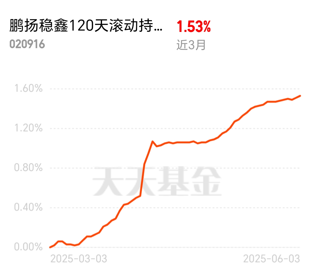 发现一个好基$鹏扬稳鑫120天滚动持有债券C$,昨天还收3个蛋,近三个月有156
