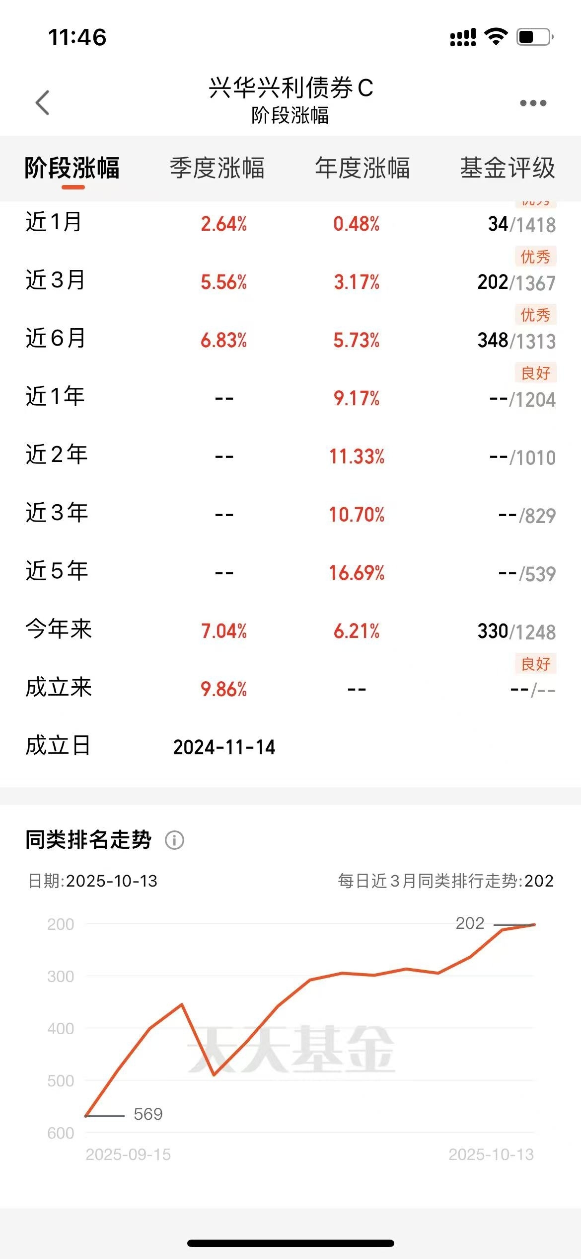 兴华兴利债券基金在债券投资上注重风险控制,主投低风险的利率债,同时精选短久期龙头地产债,还会择机调整久期。作为固收 + 产品,近一月收蛋 405 个,持有七天免赎回费,债券端策略清晰。$兴华兴利债券C$