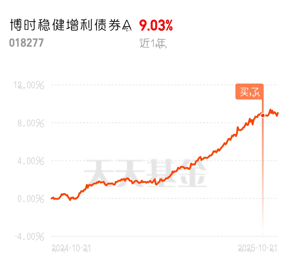 债券市场昨日迎来阳光明媚的一天,$博时稳健增利债券A$ 表现相当出色,单日收蛋将近30个,三个月累计收蛋341个,一年下来涨幅稳超9%。近期货币政策的宽松预期绝对是核心驱动力,最近看到专家分析,按照过去三年“一年两降”的惯例,四季度降准降息的可能性很大,而这对债市来说就是直接的强心剂。10月 21日,5年及以上中长期国债收益率都有所下降,这只基金重仓的不少中长期利率债正好踩中了节奏,光债券部分的资本利得就很可观。再加上它的权益仓配置特别聪明,没有追高那些波动大的热门板块,反而聚焦在高股息的公用事业股上,既能靠分红增厚收益,又不会因为权益市场回调拖累整体表现,这种“债券打底+低波权益提味”的组合,不仅有效降低了风险,又增强了收益弹性。更难得的是它的回撤控制,一年最大回撤仅0.65%,优于96%的同类产品。等着降息正式落地,这只基金大概率还能带来更多惊喜。#深地经济成新风口!产业链如何投资 ?#