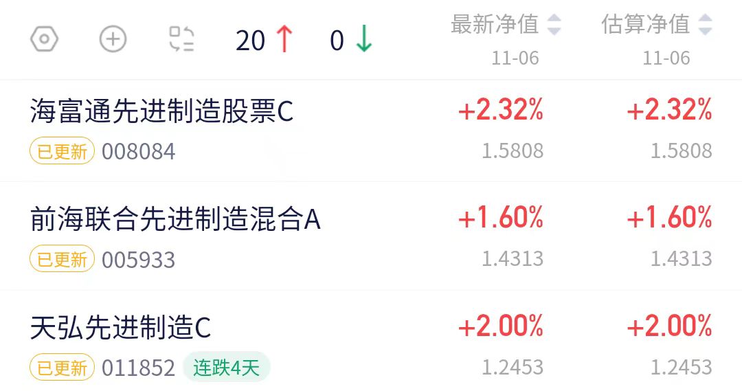 $天弘先进制造混合C(OTCFUND|011852)$上涨2%