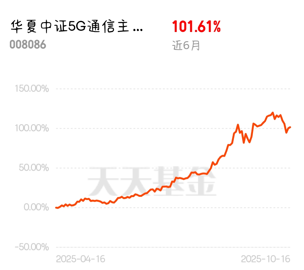 近六个月收益100%+直接翻倍了啊,这收益调整期间没有理由不加仓呀$华夏中证5G通信主题ETF联接A$