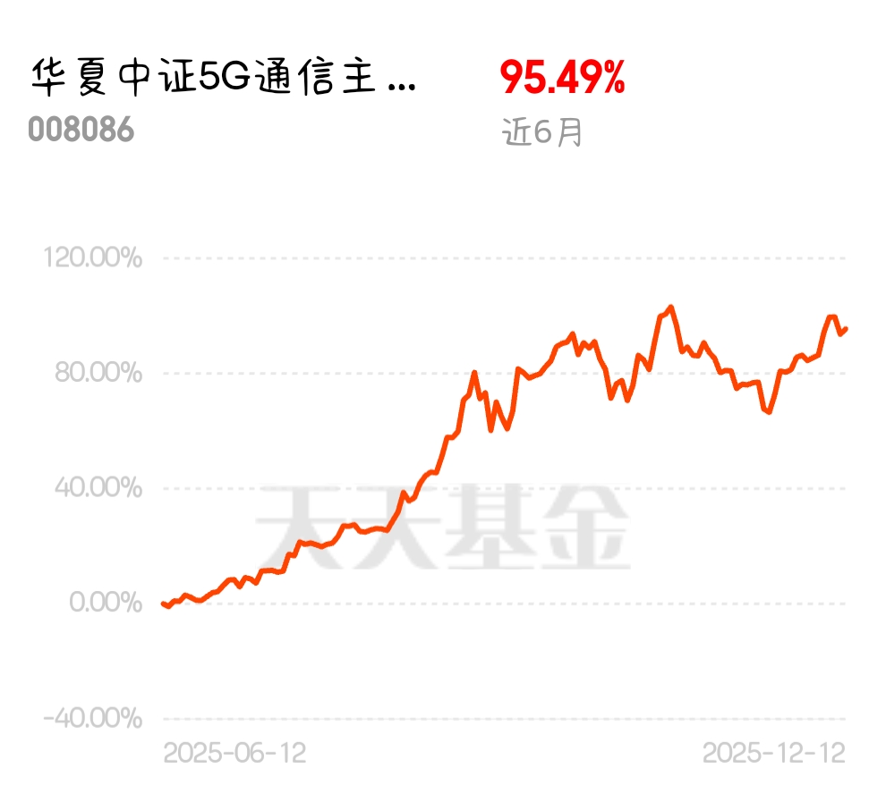 近六个月涨95%+,业绩弹性很好啊,回调就多囤点等行情$华夏中证5G通信主题ETF联接A$