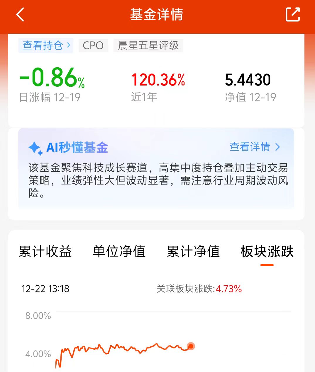 今日早盘大涨,我A回到3900点上方,在cpo的带领下,科技板块大爆发,还好我有通过$易方达瑞享混合E$ 001438进行布局,跟上车了,这个基的业绩一直很优秀,今日估值上涨4.73%,近一年上涨了120.36%,成立以来上涨了444.3%,在武总的精准掌舵下才能取得如此优异的业绩,继续看好这个基!